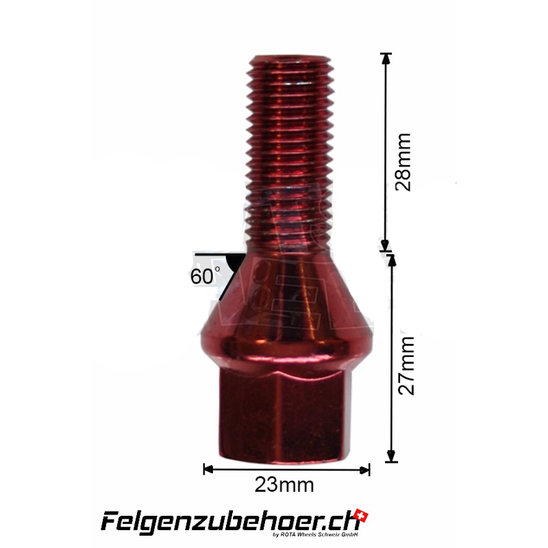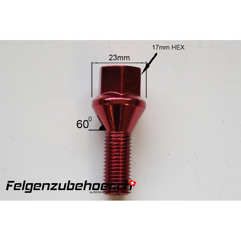 Radschrauben Stahl rot Kegelbund 26/28mm